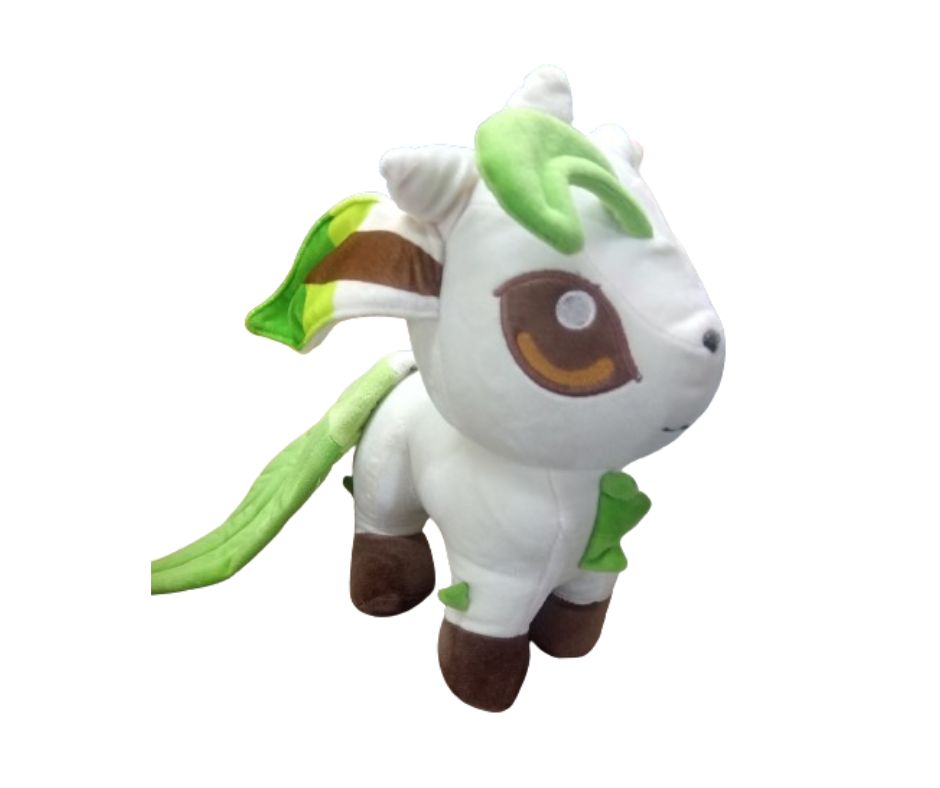 Peluche poke leafeon de 24 cm de altura de pies a cabeza, no no se esta considerando el tamaño de las orejas, peluche de serie infantil atrápalos ya, acabado suave según imagen