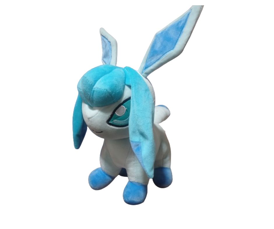 Peluche poke ivi glaceon de 24 cm de altura ( de pies a cabeza) sin sumar las orejas, peluche de serie infantil atrápalos ya, acabado suave según imagen